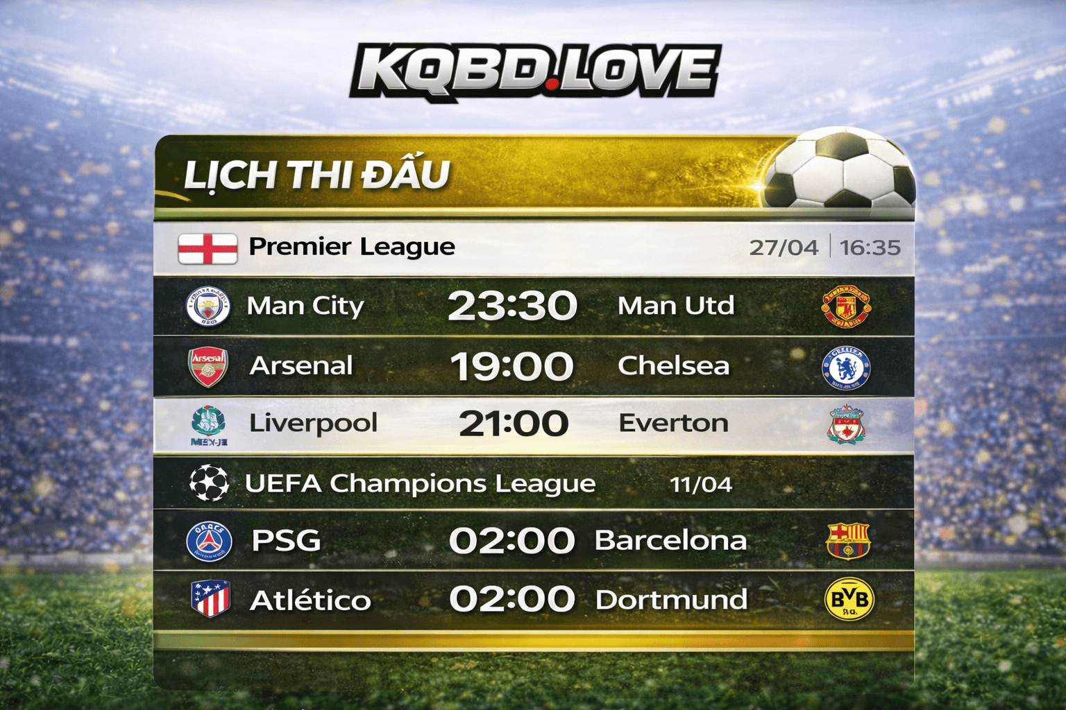 Nhờ hệ thống dữ liệu đồng bộ và tối ưu trải nghiệm người dùng, KQBD.LOVE giúp việc theo dõi lịch thi đấu trở nên đơn giản và hiệu quả hơn bao giờ hết.